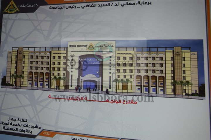واستمع الحضور الي شرح من أعضاء جهاز مشروعات القوات المسلحة تتضمن التفاصيل الخاصه باقامة المستشفي ومحتوياتها، والتي تقام علي مساحة على مساحة 8800 متر مربع تمتلكها الجامعة بمدينة بنها، ويتكون المستشفى من بدروم وطابق أرضى وخمسة طوابق متكررة بإجمالى مساحات 29960 مترا مربعا ويضم الطابق الأرضى أقسام الطوارئ والأشعة والرنيين المغناطيسى والعيادات الخارجية وادارة المستشفى ومكاتب أعضاء هيئة التدريس