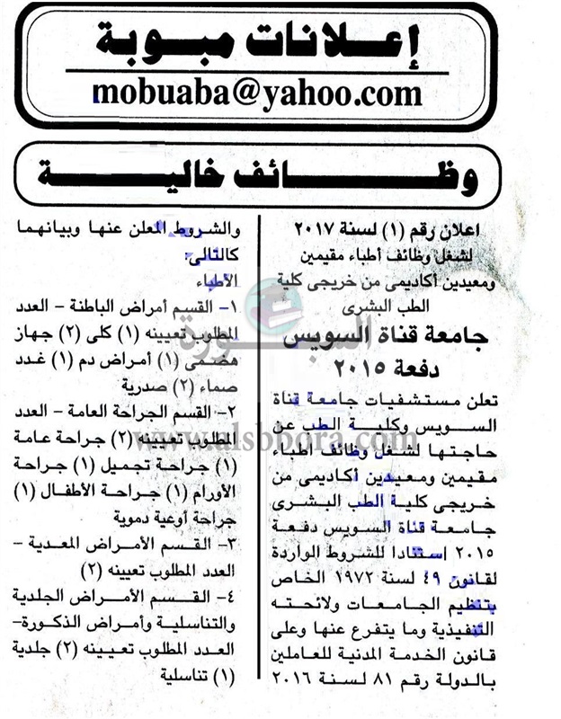 تعلن جامعة قناة السويس عن وظائف جديدة لأعضاء هيئة التدريس في 18 تخصص وذلك وفقا لنص الإعلان التالي:-