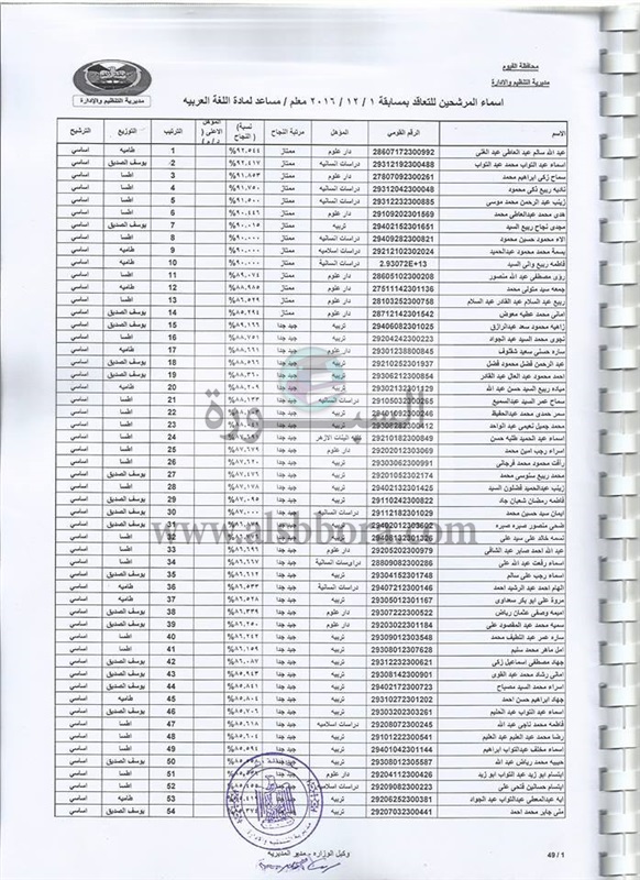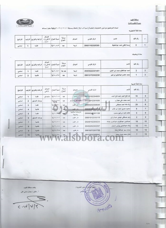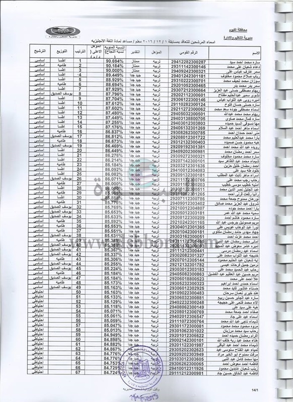 ينشر موقع السبورة النتيجة النهائية لمسابقة 250 معلم/ مساعد بعد استيفاء اجراءات لجنة التظلمات واعتماد الدكتور محافظ الفيوم.