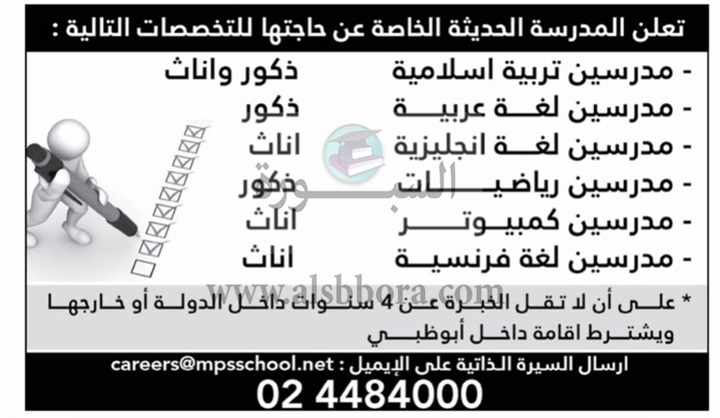 تعلن المدرسة الحديثة الإماراتية تعلن عن وظائف جديدة للمعلمين والمعلمات وذلك وفقا لنص الإعلان التالي:-