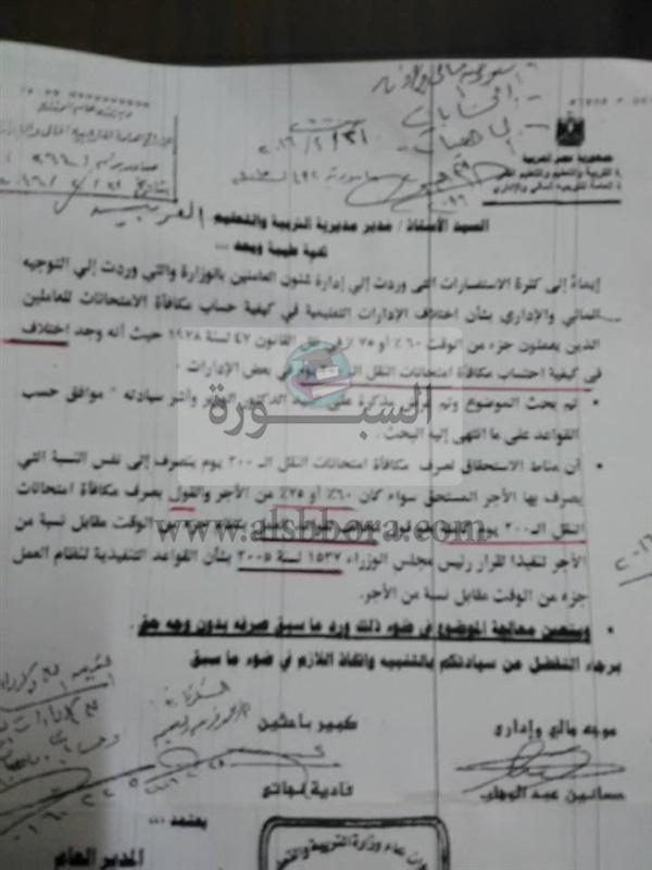 بالمستندات| ننشر فاكس التوجيه المالى بشأن استحقاق مكافأة امتحانات النقل الــ 200 يوم