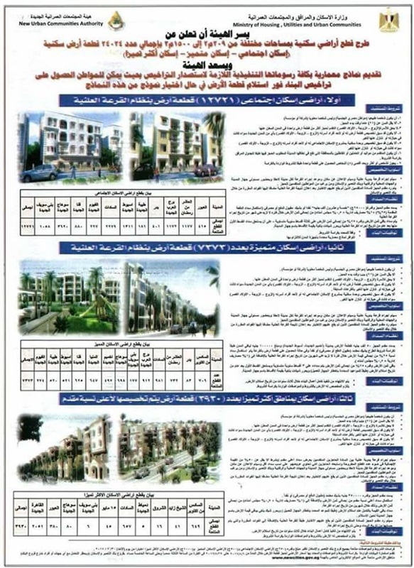 طرح اراضى "للاسكان الاجتماعى و المتميز والاكثر تميزا"
