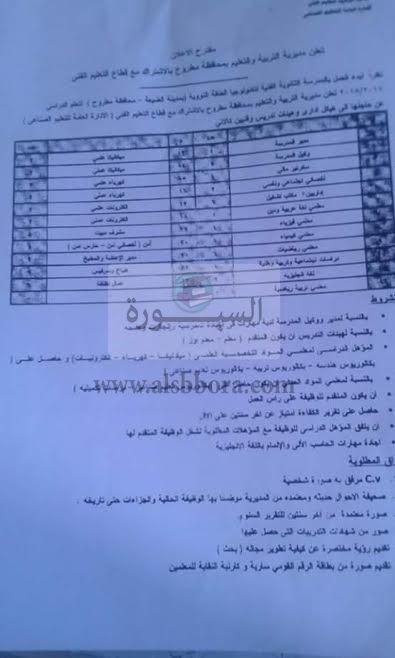 تعلن المدرسة الثانوية الفنية لتكنولوجيا الطاقة النووية بمدينة الضبعة بمحافظة مرسى مطروح عن فتح باب التقدم للمعلمين للعمل بها وفق التخصصات المنشورة في الإعلان