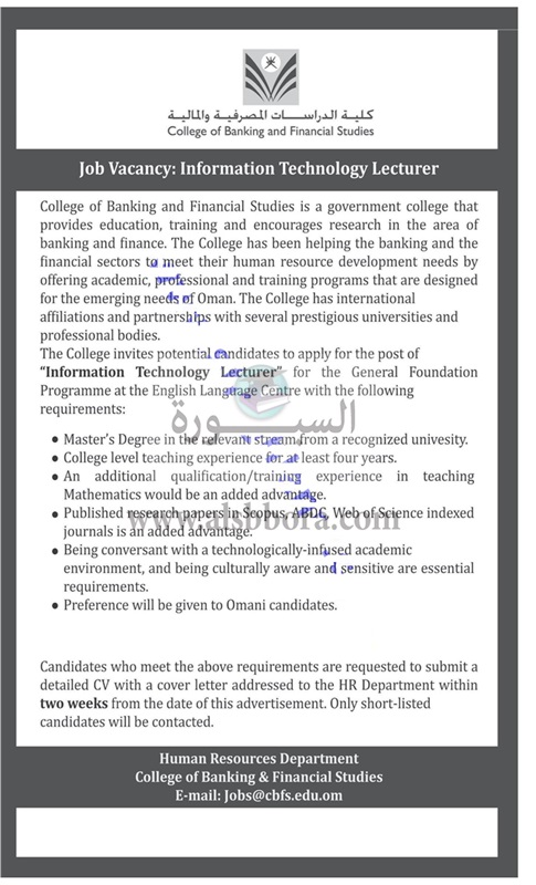 تعلن جامعة في سلطنة عمان عن وظائف جديدة لأعضاء هيئة التدريس "من حملة الماجستير والدكتوراه" وذلك وفقة لنص الإعلان التالي: