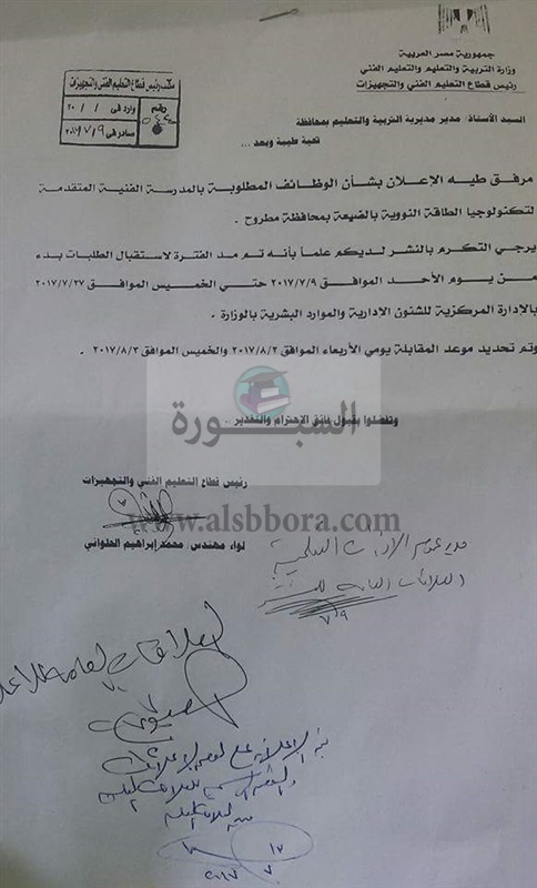 ثانيا:اعلنت مديرية التربية والتعليم بالبحيرة عن حاجتها لشغل عدد من الوظائف الادارية والاشرافيه والتوجيه الفنى بكافة انواع التعليم العام والفنى ، وفقا للوظائف فى الاعلان التالى :