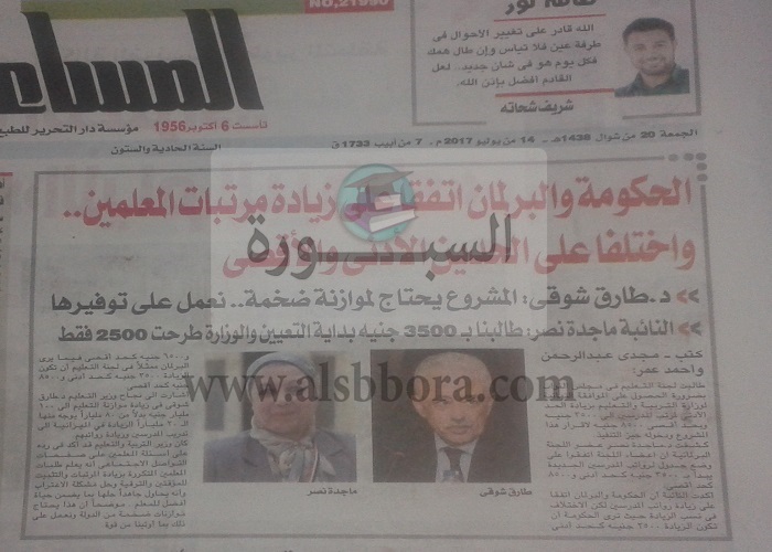 طالبت لجنة التعليم في مجلس النواب بضرورة الحصول علي الموافقة النهائية لوزارة التربية والتعليم بزيادة الحد الأدني لمرتب المدرسين الي 3500 جنيه وبحد أقصي 8500 جنيه لاقرار هذا المشروع ودخوله حيز التنفيذ.