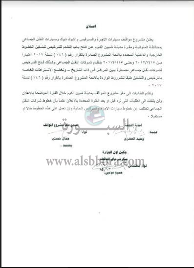 الشركة العاشرة تتولي 3 خطوط سرفيس بقويسنا و 4 خطوط سرفيس ببركة السبع .
