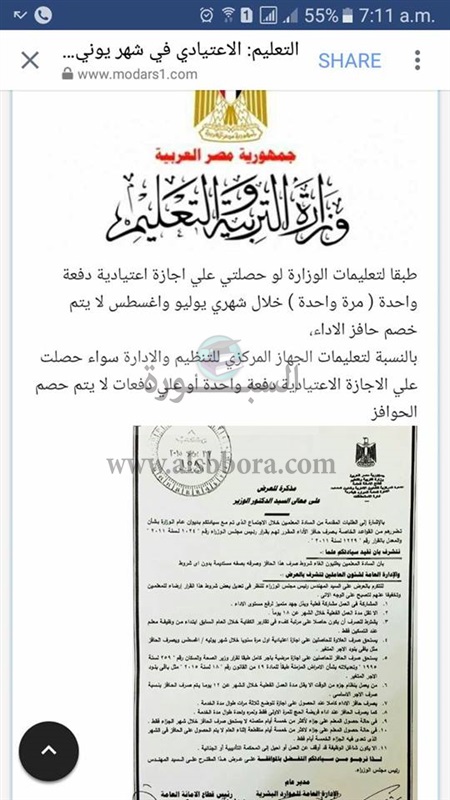 بالمستندات| "التعليم" تعلن عن حالات الحصول علي الإجازة الاعتيادية "دفعة واحدة" بدون خصم حافز الأداء