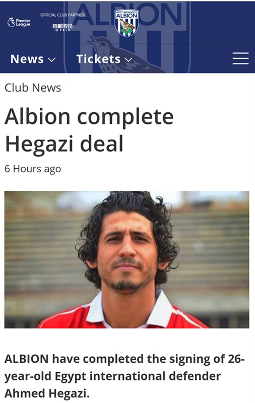 ويست بروميتش يعلن التعاقد الرسمى مع أحمد حجازي