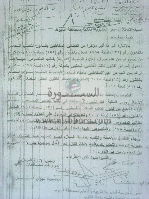 بالمستندات| وزارة المالية تعلن عن أحقية جميع المعلمين فى صرف العلاوة الدورية