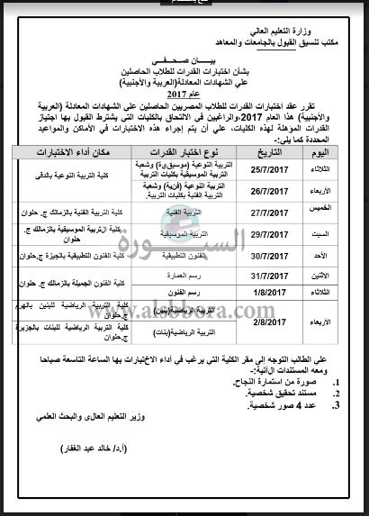 ننشر مواعيد وأماكن اختبارات القدرات للطلاب المصريين الحاصلين على الشهادات المعادلة