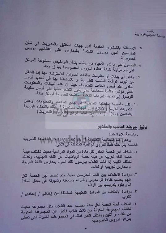 محاسبة المعلمين والسناتر التعليمية ضريبيا علي الدروس الخصوصية ويراعي الأتي :