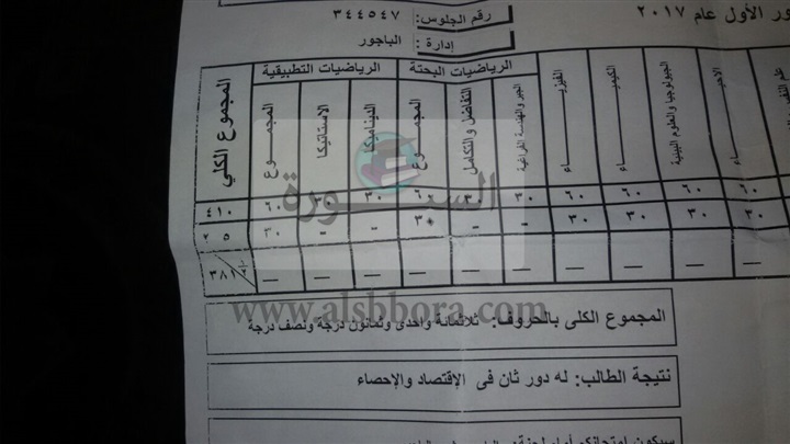 نتائج الطلاب العشرين باللجنة وهى
