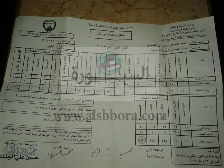 بالمستندات.. ننشر نتائج طلاب الثانوية العامة المحجوب نتيجتهم بعد عفو وزير التربية والتعليم