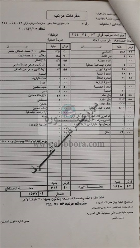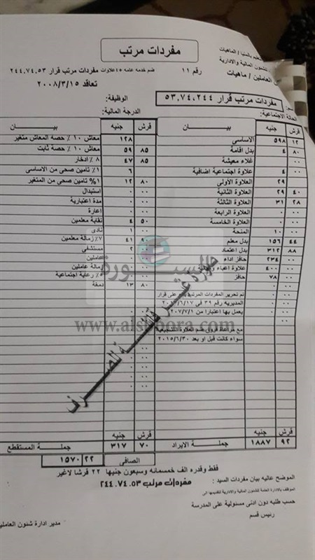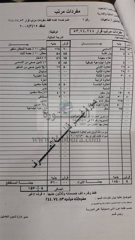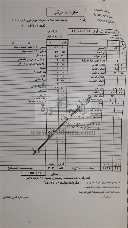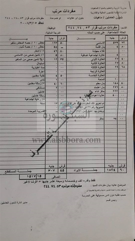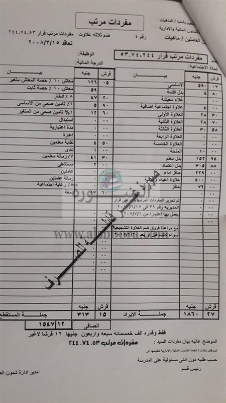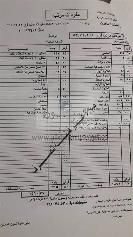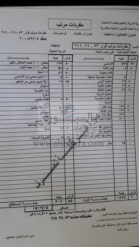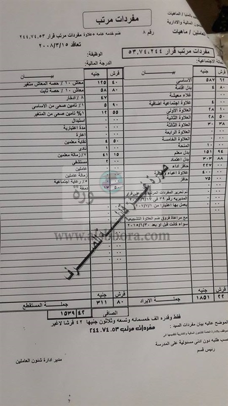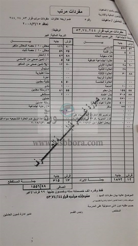 ننشر جميع مفردات رواتب المعلمين المعينين بأرقام 244 و74 و53