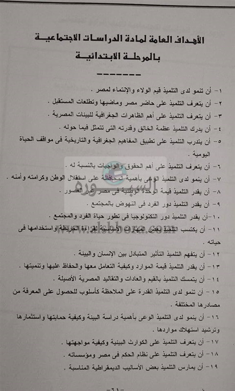 أصدرت وزارة التربية والتعليم العديد من التعليمات الهامة والخاصة للمعلمين بالمرحلة الابتدائية، حيث تضمنت هذه التعليمات أهم الأهداف العامة التى يجب أن يتبعها المعلمون عن دراستهم للمواد "اللغة العربية والتربية الدينية والرياضيات والدراسات الاجتماعية".