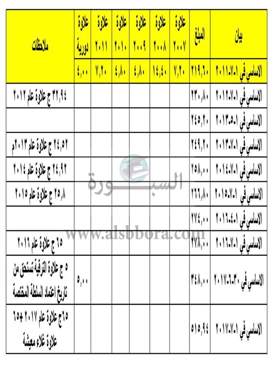 ننشر تدرج مرتب معلم معين في 1-7-2011 وصولا للاساسي في 1-7-2017