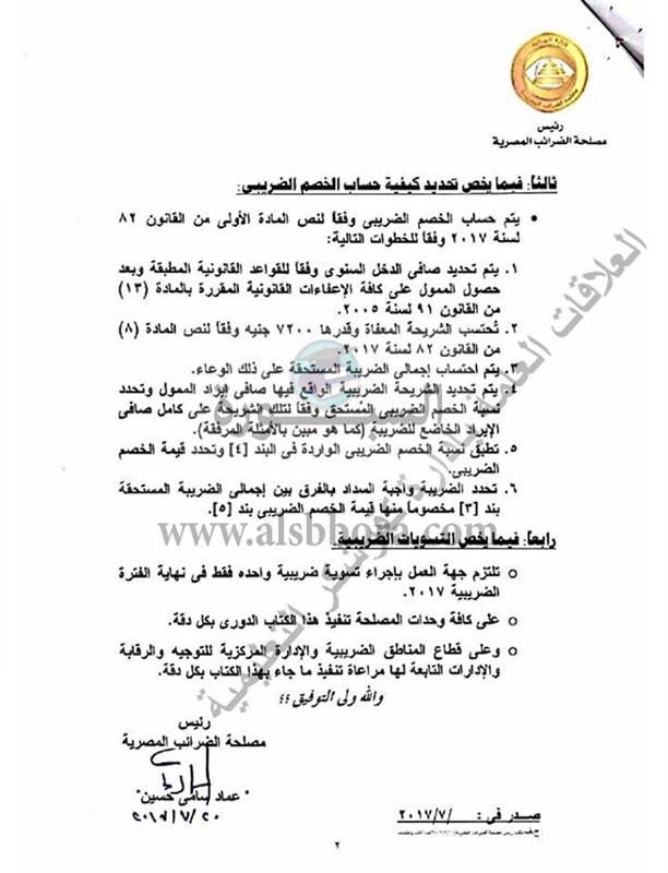 أصدرت مصلحة الضرائب الكتاب الدوري 35 لسنة