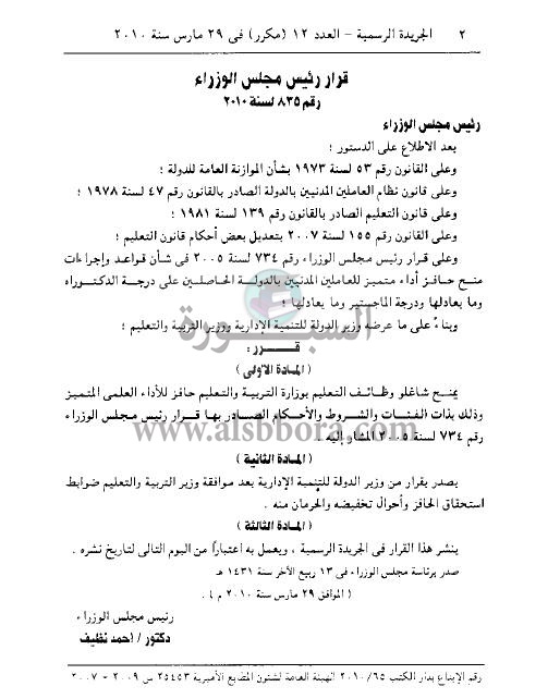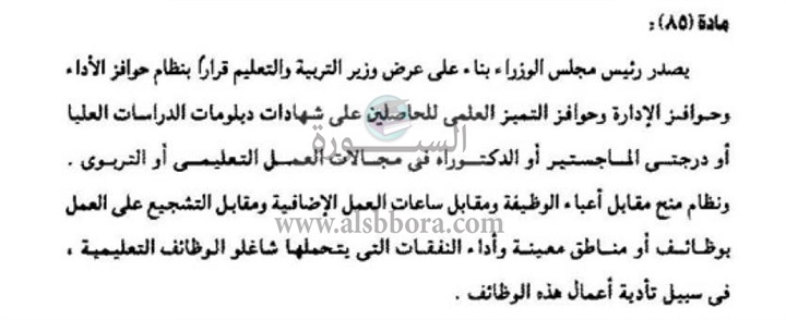 أفاد الحسين محمد منصور الجعفرى أحد نشطاء التعليم بأن القانون أجاز للمعلمين الحاصلين على الماجستير والدكتوراة وما يعادلها الحصول على حافز التميز العلمي، والتى نصت عليه المادة 85 من القانون 155 لسنة 200م.