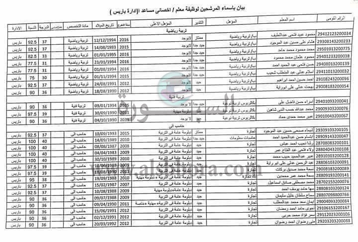 بالأسماء.. ننشر نتائج مسابقه 300 معلم المرشحين لادارة باريس بالوادي الجديد