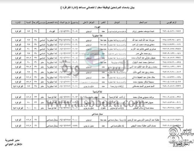 وبناءً على توجيهات اللواء محمد سالمان الزملوط محافظ الوادي الجديد, أنه سيتم إعلان أسماء المقبولين بمسابقة 300 معلم، مؤكدا أن الأسماء التي تم الإعلان عنها لن تكون بصفة نهائية حتى يتم التأكد من استيفاء كل الشروط وتلقي كافة التظلمات.