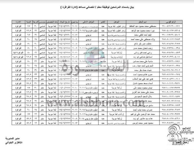بالأسماء.. اعتماد نتيجة مسابقة الـ 300 معلم بالوادى الجديد