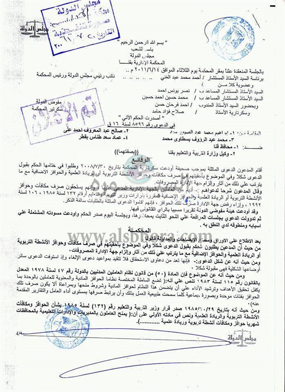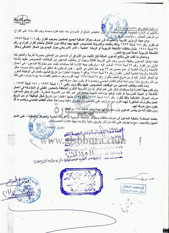 تنشر "السبورة" بناء علي طلب المعلمين نص حكم مجلس الدولة بأحقية المعلمين في صرف بدلات " الريادة والأنشطة" للمعلمين.