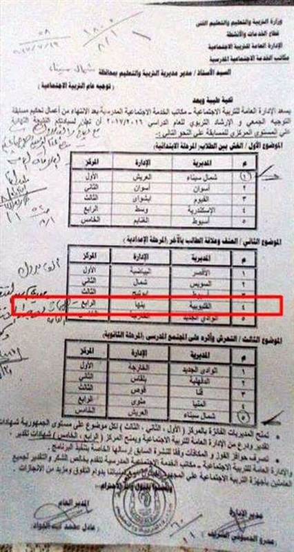 وبالمركز الأول في المرحلة الثانوية بموضوع التحرش و أثره علي المجتمع المدرسي