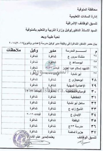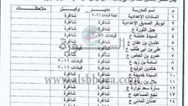 اشار السبكي ان الاماكن الشاغره 37 موقعا في وظيفة مدير ووكيل مدرسة بالاضافة الي التوجيهات الفنية