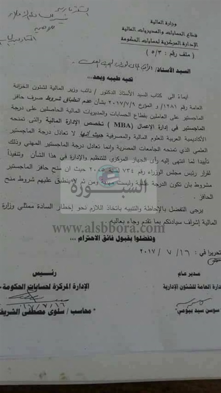 عاجل وبالمستندات| وزارة المالية تحرم هؤلاء من صرف حافز الماجستير