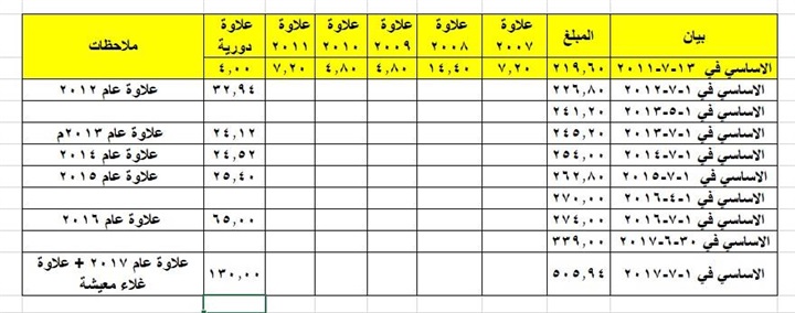 ننشر تدرج مرتب معلم معين في 13-7-2011 وصولا الى 2017/7/1