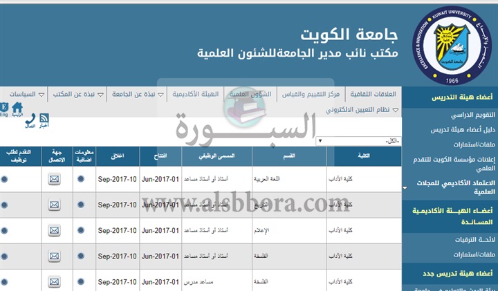 تعلن جامعة الكويت تعلن عن وظائف جديدة لأعضاء هيئة التدريس "من حملة الماجستير والدكتوراه" وذلك وفقا لنص الإعلان التالي:-