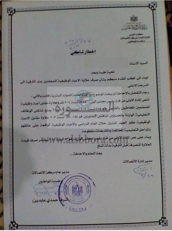 الامر الذى دعا جموع المعلمين للاستياء لانها الوزارة الوحيدة التى تقل رواتب موظفينها بالترقية للدرجة الاعلى ، على خلاف الوزارات الاخرى التى يتم بها الزياده عن الترقى للراتب والدرجة .