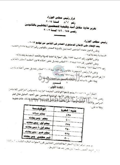 وبالتالى فان الزياده الكلية لراتب المعلمين يتمثل فى خمسة جنيهات فقط لاغير للترقيه لدرجة معلم أول .