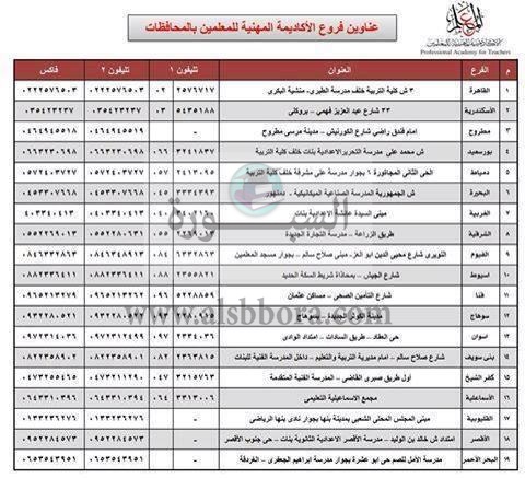 ينشر موقع السبورة عناوين فروع الاكاديمية المهنية للمعلمين فى جميع المحافظات
