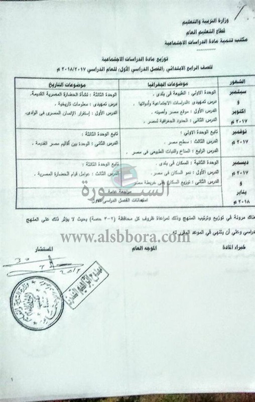 ننشر توزيع منهج الدراسات الاجتماعية للصف الرابع الابتدائى للعام الدارسى 2018/2017