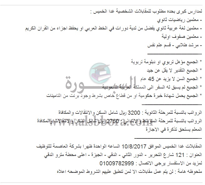 التقديم يبدأ غدا| مدارس جدة السعودية تعلن عن وظائف جديدة للمعلمين والمعلمات.. ننشر نص الإعلان