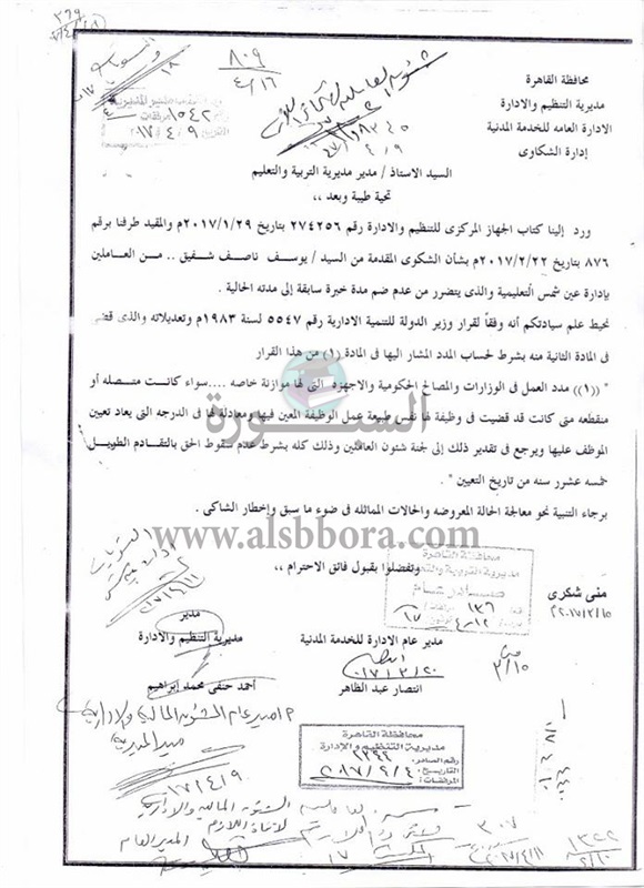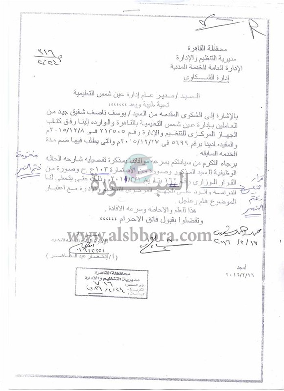 تنشر "السبورة" قرار الجهاز المركزي للتنظيم والإدراة الخاصة بالمعلمين ردا علي شكوي إدارة عين شمس التعليمية.