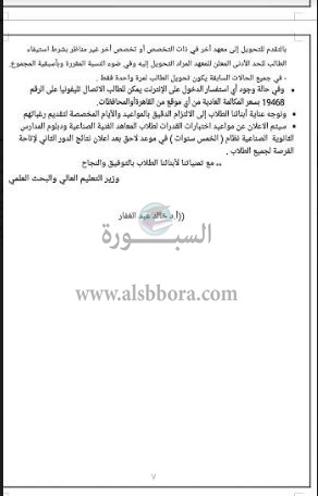 تعلن وزارة التعليم العالي والبحث العلمي عن فتح باب التنسيق لطلاب الشهادات الفنية يوم الثلاثاء الموافق ١٥ اغسطس حتي يوم الاثنين الموافق ٢١ اغسطس .