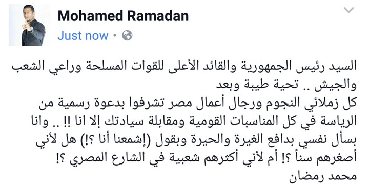 ماذا قال الفنان محمد رمضان للرئيس السيسى فى هذه الرسالة؟