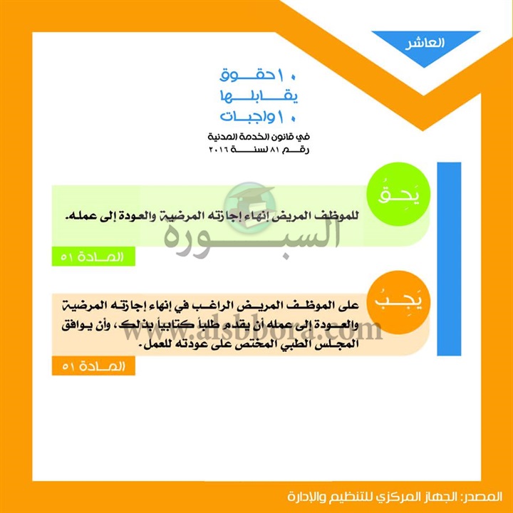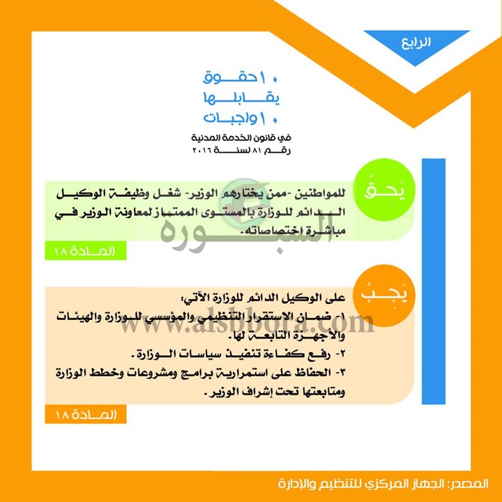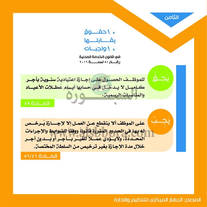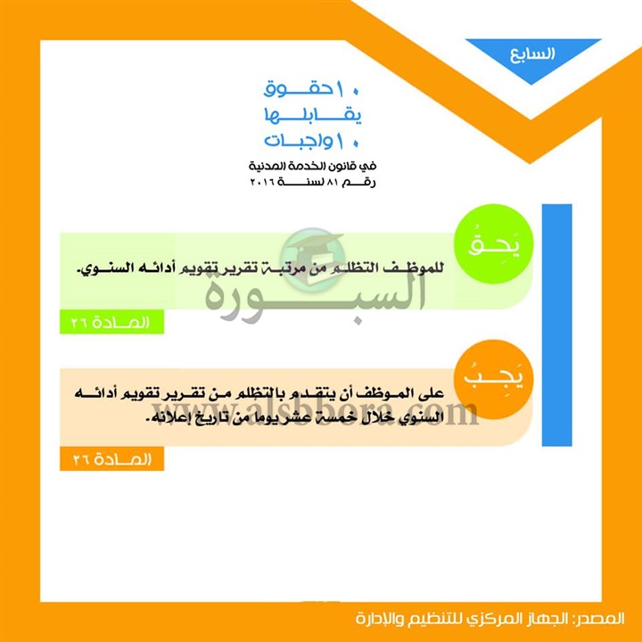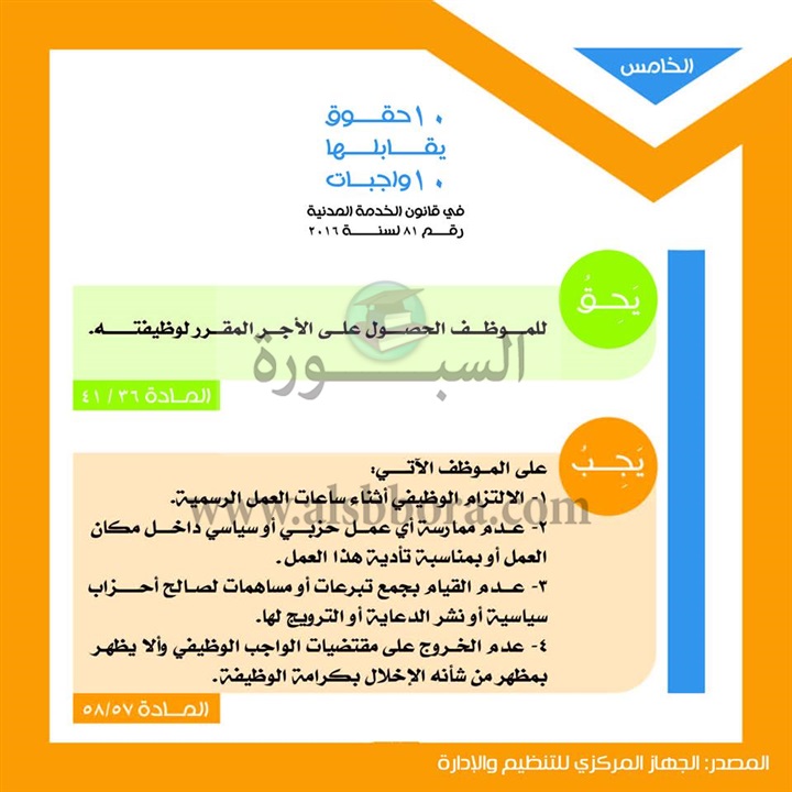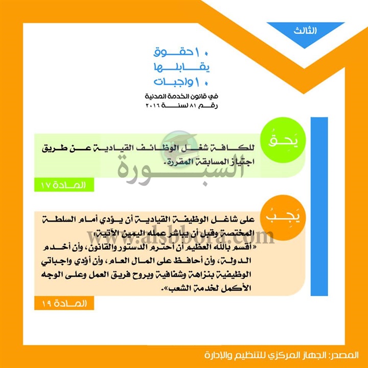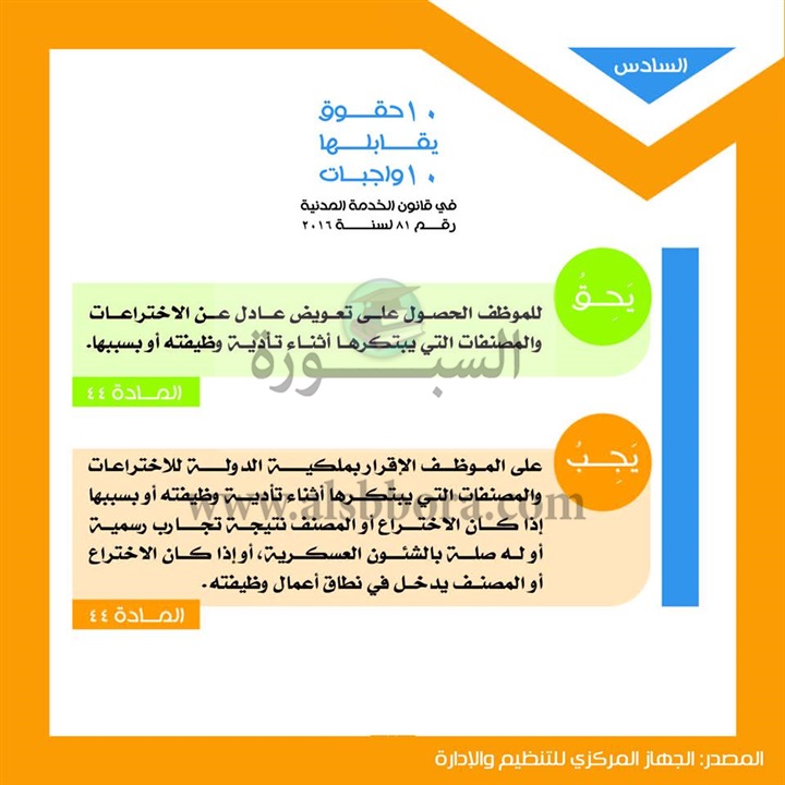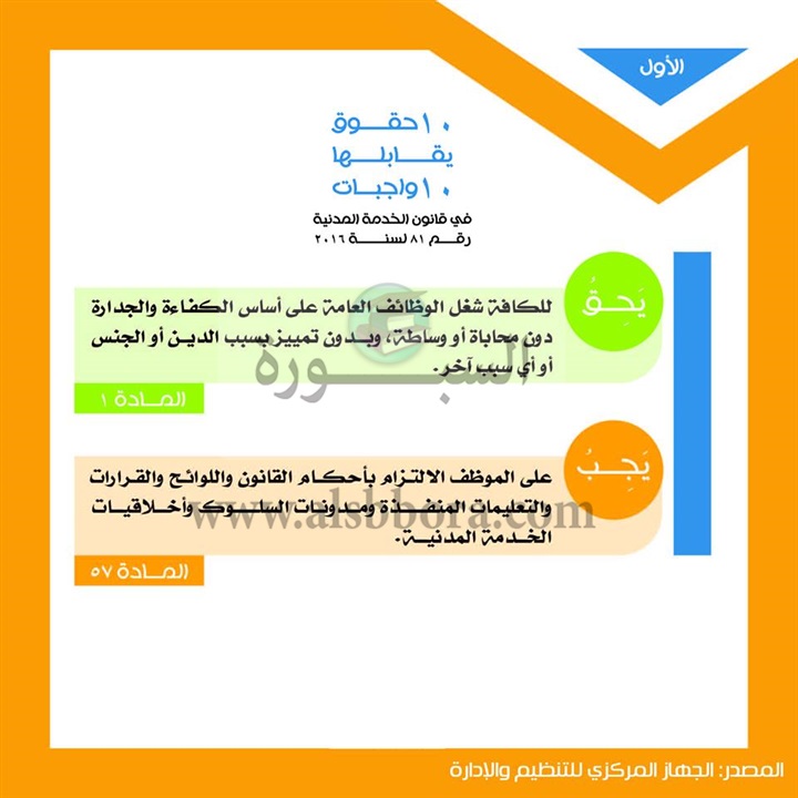 نشر مركز المعلومات ودعم اتخاذ القرار بمجلس الوزراء عبر صفحته الرسمية على موقع التواصل الاجتماعي "فيس بوك" الحقوق والواجبات في قانون الخدمة المدنية تحت عنوان "المعلومات حق لكل مواطن"، 10 حقوق يقابلها 10 واجبات في قانون الخدمة المدنية".