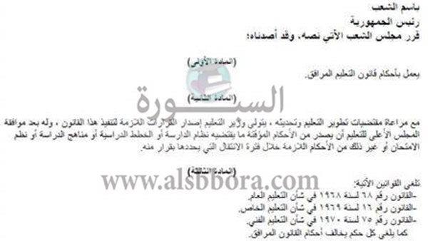 ينشر موقع السبورة قانون التعليم الصادر رقم 139 لسنة 1981 وتعديلاته، واليكم نص القانون.