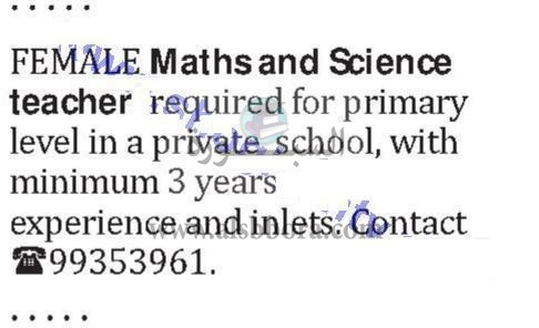 أعلنت مدرسة خاصة عمانية عن حاجتها للتعاقد مع معلمين ومعلمات في عدد من المواد وذلك وفقا لنص الإعلان التالي:-