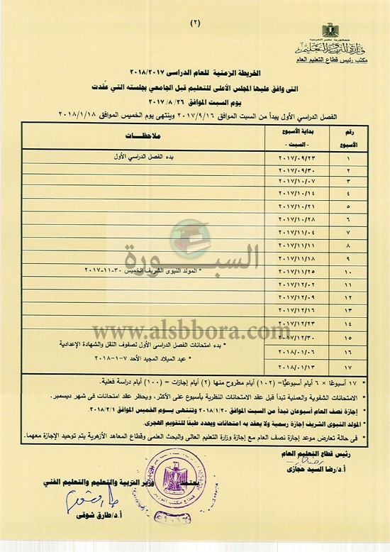 تأكيدا لانفراد السبورة | "الأعلى للتعليم" يعلن عن جدول الأجازات الرسمية للعام الدراسي 2017 / 2018