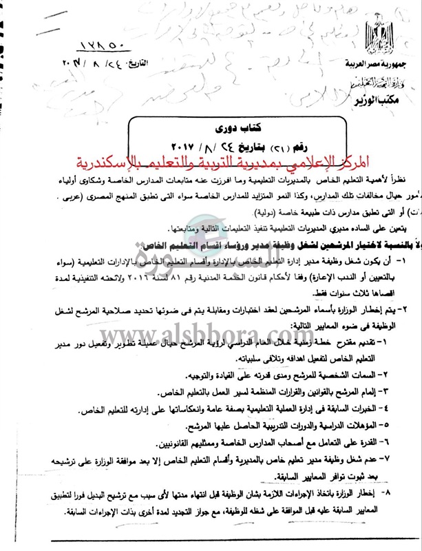 وأصدر الوزير تعليمات بالمراجعة المستمرة لقرارات ترخيص المدارس الدولية والتأكد من عدم قبول طلاب قبل صدور قرار الترخيص وكذا الإلتزام بقرار التجديد للقرارات الصادرة بالترخيص.