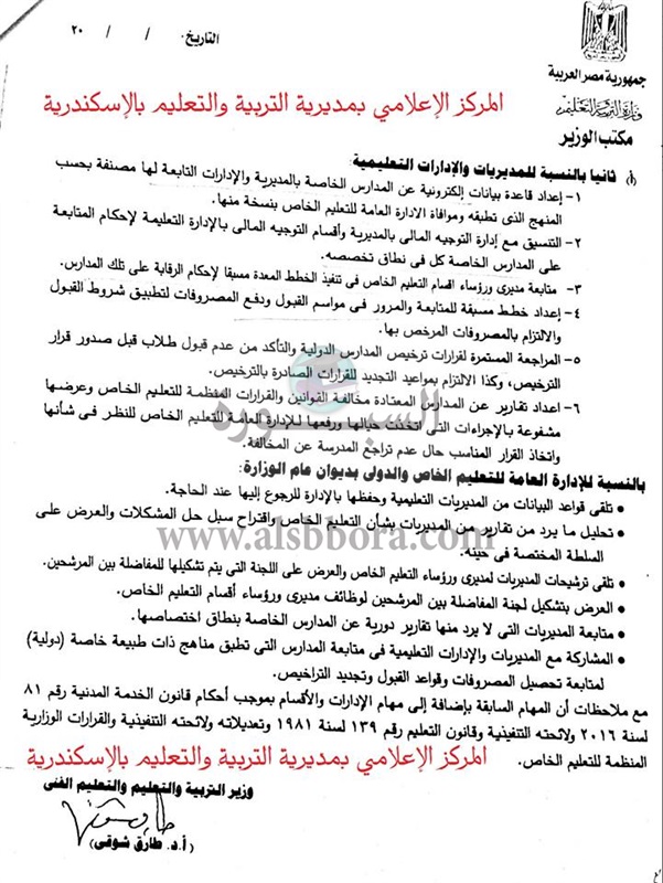 أصدر الدكتور طارق شوقي وزير التربية والتعليم والتعليم الفني، كتابا دوريًا، ألزم خلاله على مديري المديريات التعليمية بتنفيذ عدة تعليمات، لضبط منظومة التعليم الخاص.