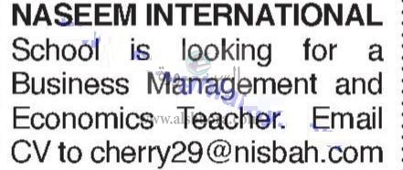 تعلن مدارس نسيم البحرينية عن وظائف جديدة للمعلمين والمعلمات وذلك وفقا لنص الإعلان التالي:-
