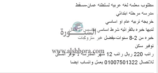 تعلن كبري المدارس العمانية عن وظائف جديدة للمعلمين والمعلمات وذلك وفقا لنص الإعلان التالي:
