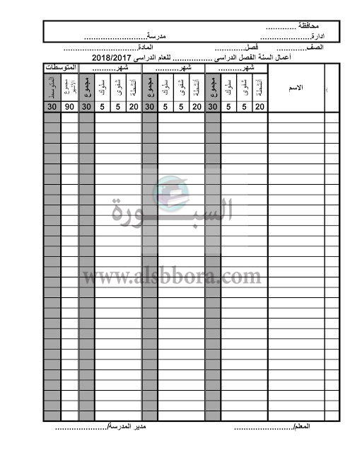 ينشر موقع السبورة كشف بأعمال السنة للمرحلة الاعدادية للعام الدراسى 2017/2018 بعد الغاء الميدتيرم