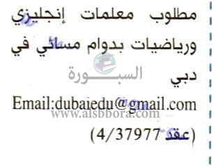 تعلن مدرسة خاصة قي الإمارات عن وظائف جديدة للمعلمين والمعلمات وذلك وفقا لنص الإعلان التالي:-